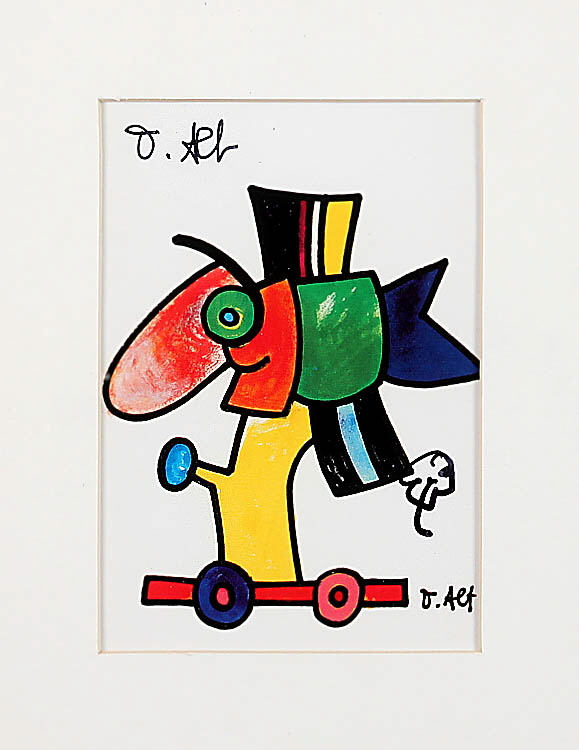 *1940 Wernigerode, lebt und arbeitet seit 1977 in Hamm-Norddinker; deut. Maler, Grafiker und Bildhauer. Studium an der Hochschule für Bildende Künste in Berlin, Meisterschüler von Prof. Hermann Bachmann. Seit 1965 als freischaffender Künstler tätig. „Roller Fisch“. Aus dem Gengenbacher Adventskalender. Farbmultiple, li. o. handsign. O. Alt. 12 x 10,2 cm. Passepartout, vergl. R..