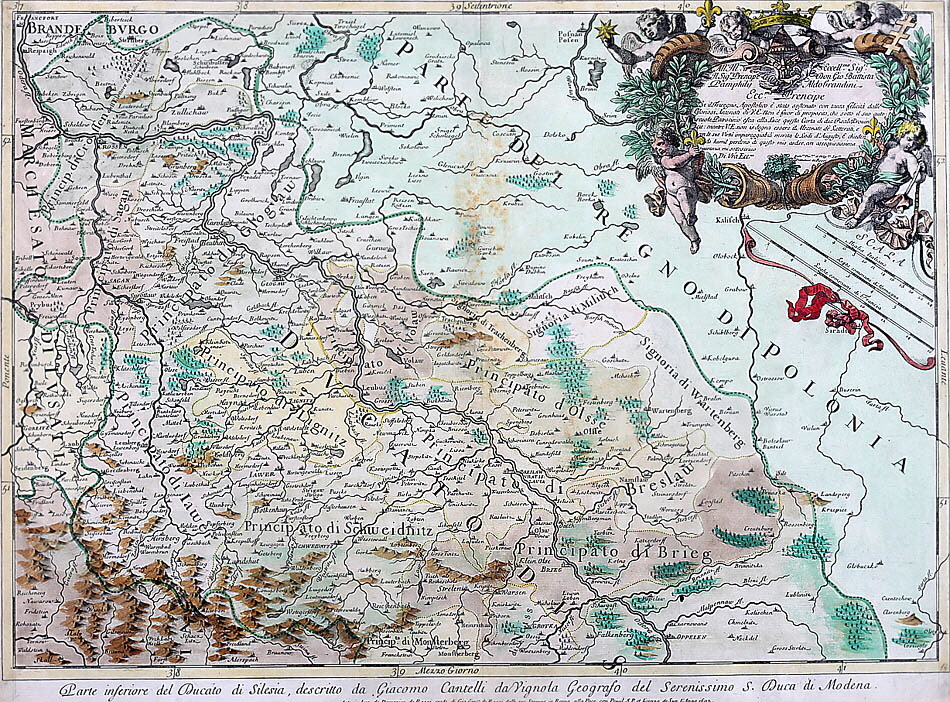 Landkarte Teile von Nordostdeutschland und Region Polen. Domenico de Rossi, 1692. 41,6 x 58,5 cm. Im Bereich der Mittenfalz mehrere bräunliche Verfleckungen. Passepartout, vergl. R..