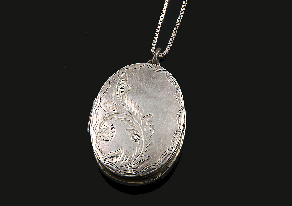 925er Silber. Ovales Pillendöschen als Anhänger. L ca. 4,2 cm. Dünne Venezianerkette mit Ringösenschließe. Zus. 13,5 g.
