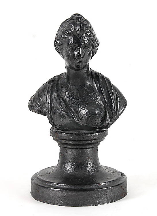 „Frauenbüste“. Schwarz patinierter Eisenguss. H 29,5 cm.