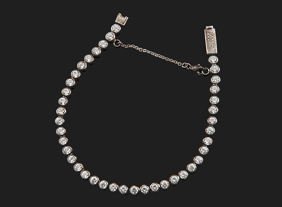 925er Silber. Auf der Kastenschließe Stempel: JOOP. Zirkonia in feinem Brillantschliff. Schließe besch.. L ca. 19 cm. 14 g brutto.