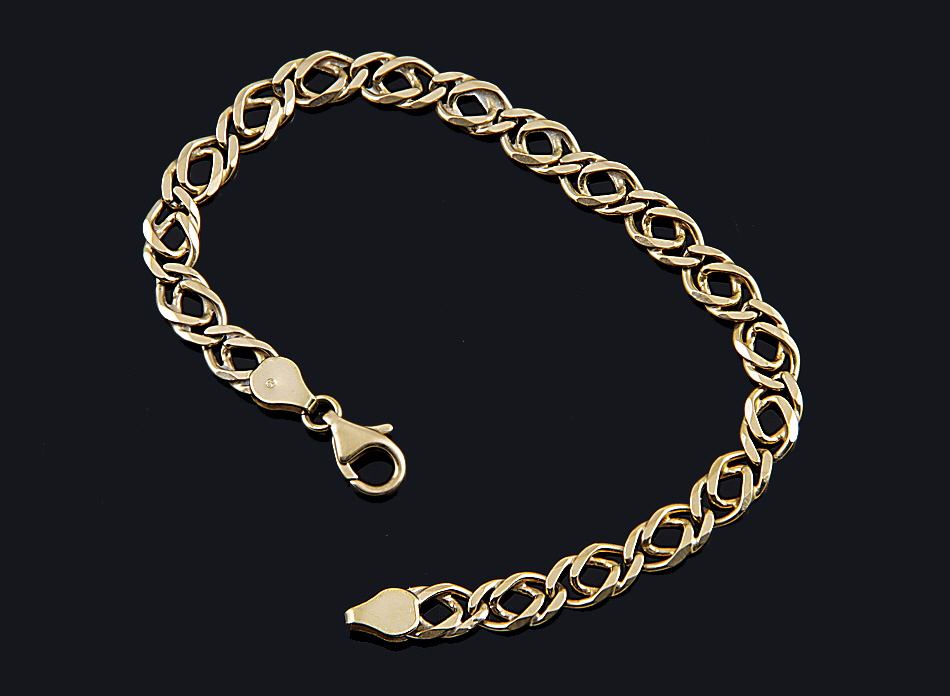 GG 333. Offene, ringförmige Glieder. Karabinerhakenschließe. L ca. 20,5 cm. 10 g.