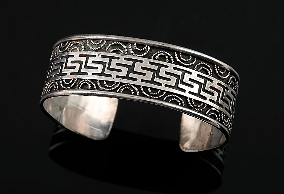 Griechenland. 925er Silber. Mäandermuster auf geschwärztem Grund. D ca. 5,9 cm, B ca. 2,1 cm. 27 g.