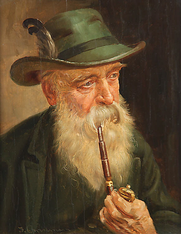 20. Jh.. „Bärtiger Pfeifenraucher“. Li. u. sign. J. Christmann. Öl/Holz, 24,7 x 19,7 cm. Dek. Goldr..