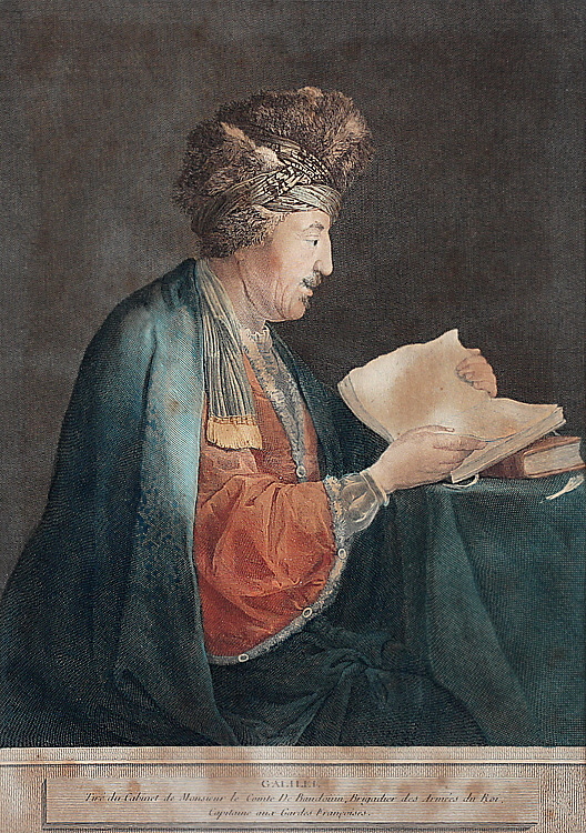 „Galileo“. Ca. 33,5 x 23,8 cm (Bildausschnitt). Bl. gebräunt, Stockflecken. Passepartout, vergl. R..