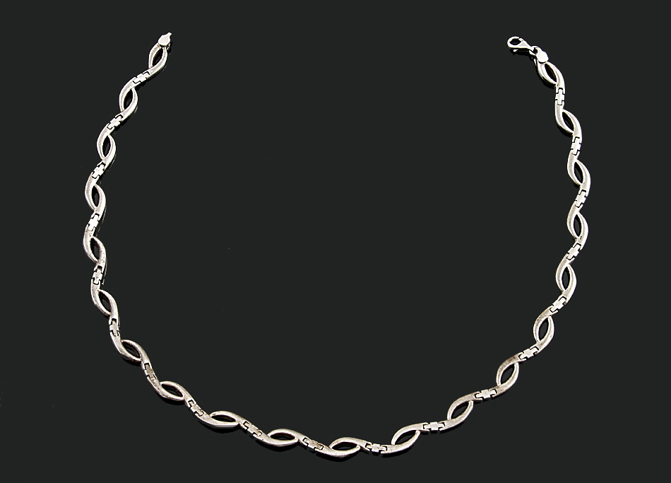 925er Silber. Durchbrochenes Mäandermuster. Karabinerhakenschließe. L ca. 45,5 cm. 38 g.