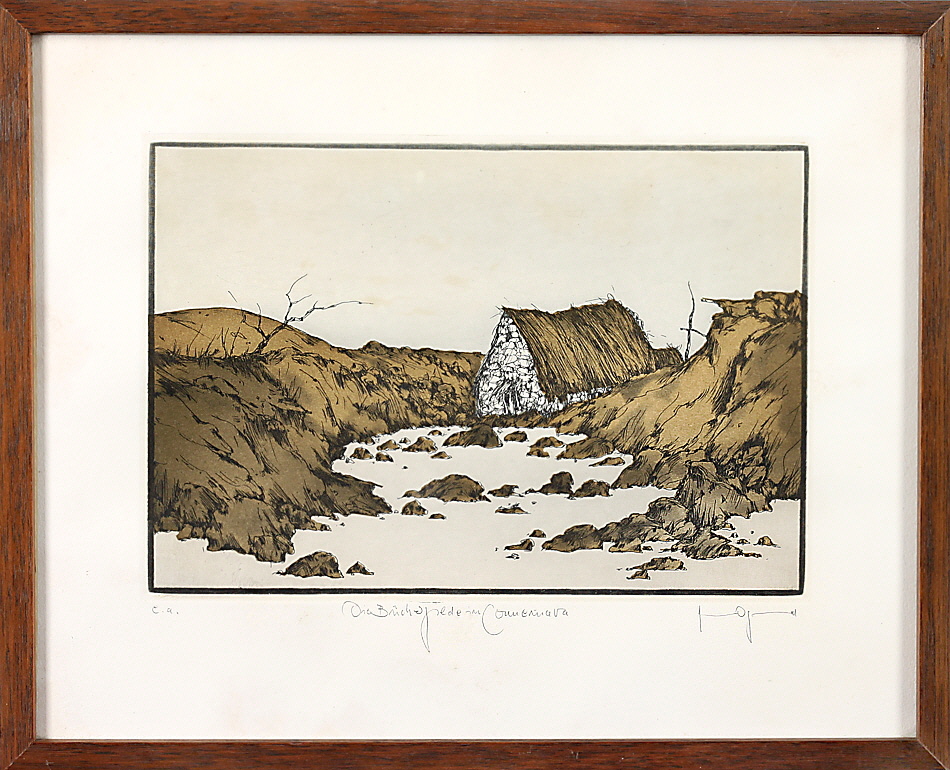 „Die Büchergilde in Connemara“. Um 1976. Farbradierung, re. u. handsign. Gertrude Degenhardt, betit., bez. e.a.. 16,5 x 24,2 cm, auf Bütten. Vergl. R..