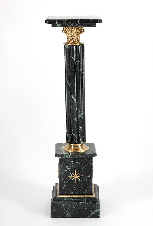 Schwarz-grüner, belgischer Marmor, Messingappliken. H 103 cm. Zustand A/B.