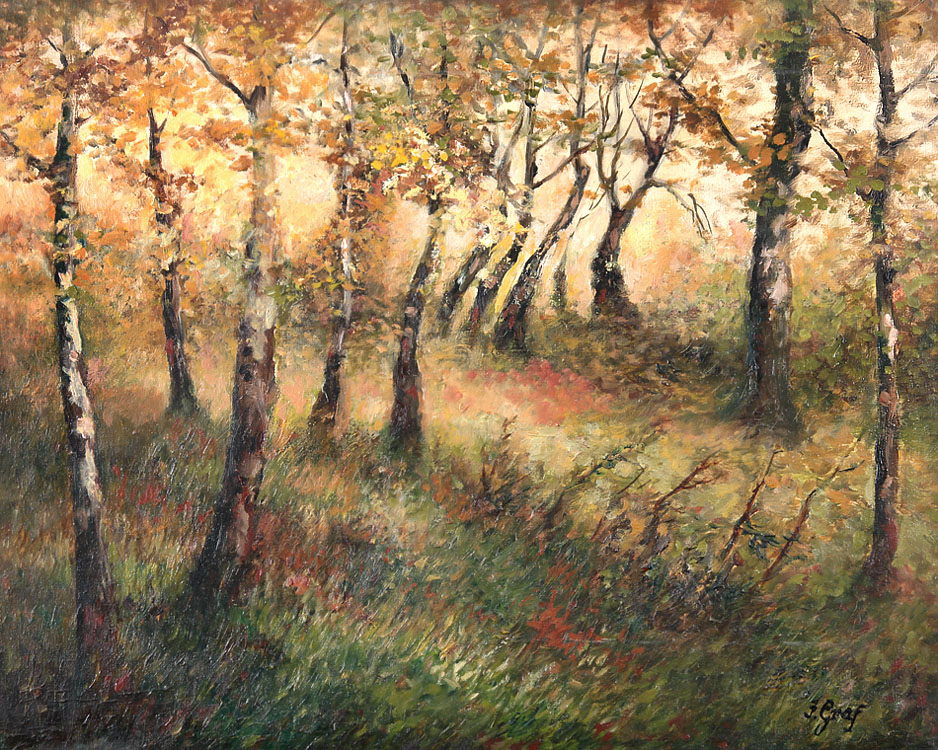 „Herbstlandschaft“. Re. u. sign. J. Graf. Öl/Lwd., 40 x 50,5 cm. R..