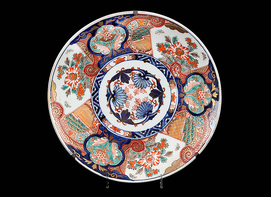 Japan, Meiji-Periode. Porzellan, typische Bemalung in Kobaltblau, Eisenrot, Grün und Gold. D 31,2 cm.