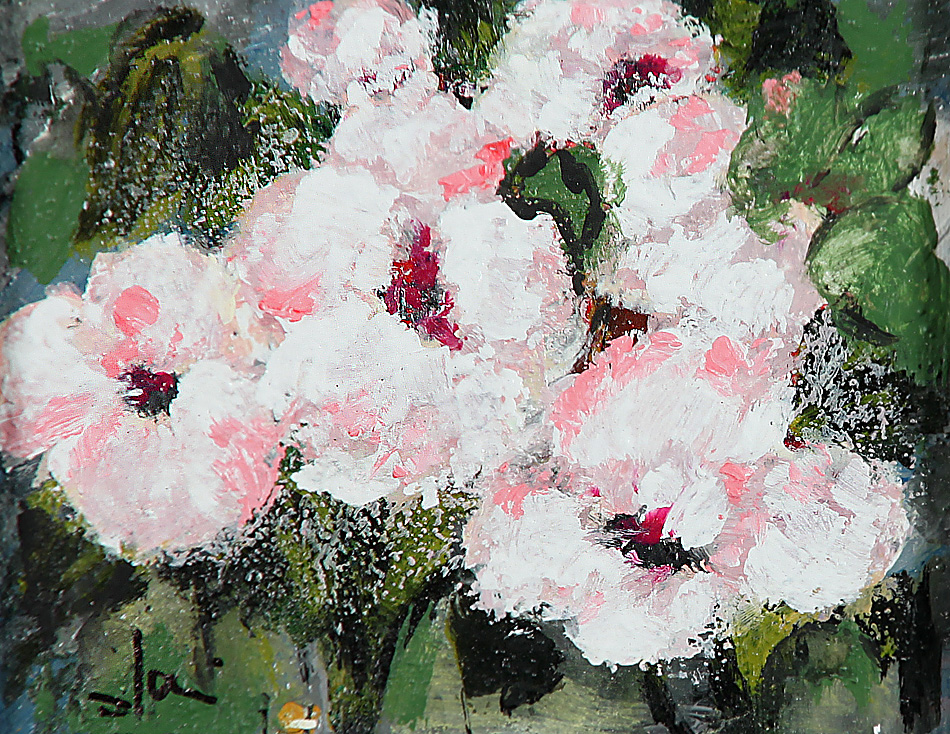 „Weiße Rosen“. Li. u. sign. Jani. Acryl/Karton, ca. 12 x 15,2 cm (Bildausschnitt). R..