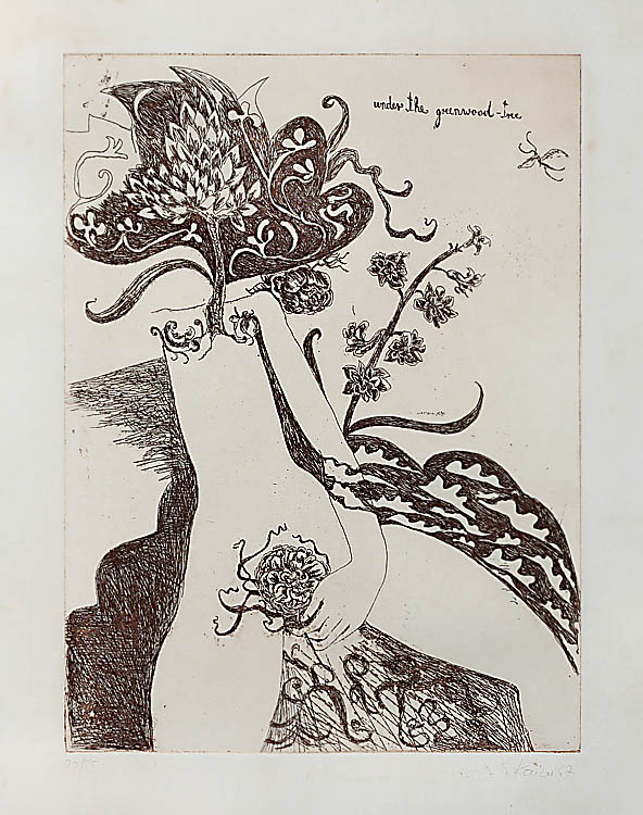 „under the greenwood-tree“. Kaltnadelradierung, re. u. handsign. Kaiser, dat. (19)67, Aufl. 20/25. 31,5 x 23,4 cm. Stellenweise stockfleckig. Unter Glas gerahmt.