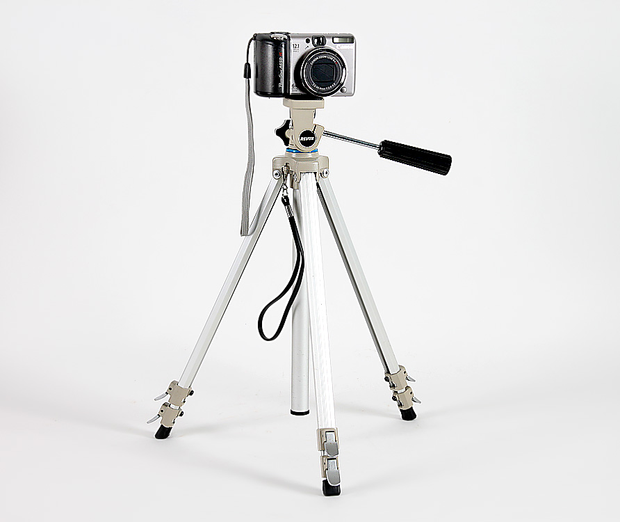 Canon Power Shot A650 IS. Funktionen nicht geprüft. Nur mäßige Gebrauchsspuren. Dazu ein Stativ, REVUE Nr. 1698.