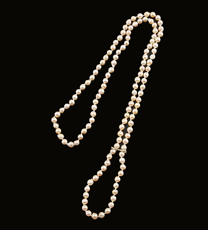 Zuchtperlen mit Wachstumsmerkmalen. Zwischenteil GG 585. L ca. 92 cm.