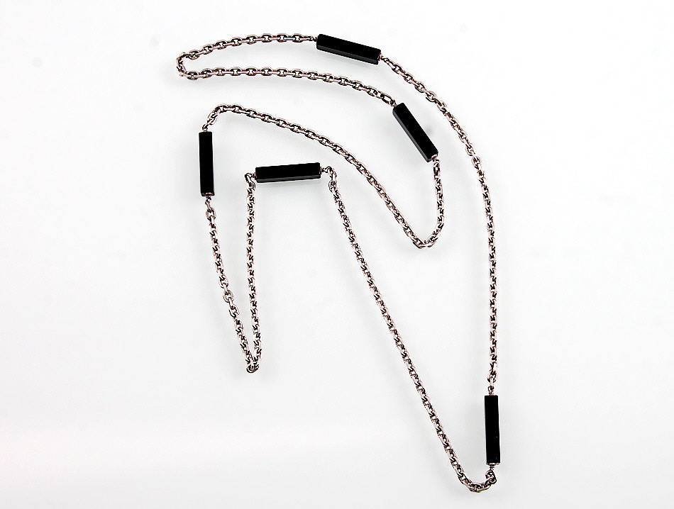 835er Silber. Fünf schwarze Onyxstäbchen als Zwischenteile. L ca. 45 cm. 37,3 g brutto.