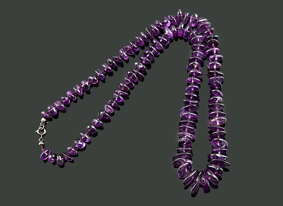 Barocke Amethyste, verlaufend. Ringösenschließe. L ca. 65 cm.