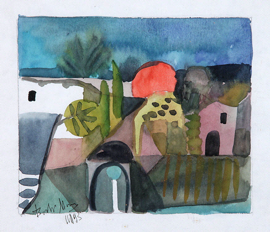 Li. u. sign. Bodo Mans, dat. (19)93. Aquarell/Bütten, 16 x 19,2 cm. Passepartout, vergl. R..