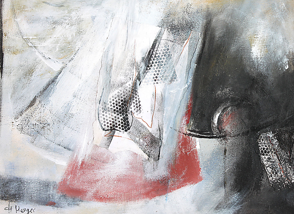 1936 Magdeburg, lebt und arbeitet in Ludwigsburg; deut. Malerin und Zeichnerin. Studium an der Europäischen Kunstakad. in Trier, der Kunstakad. in Bad Reichenhall, der Freien Kunstschule in Augsburg und der Kunstschule in Filderstadt. „Ohne Titel II“. Li. u. sign. H Menger. Mischtechnik/Karton, 47 x 64 cm. R..