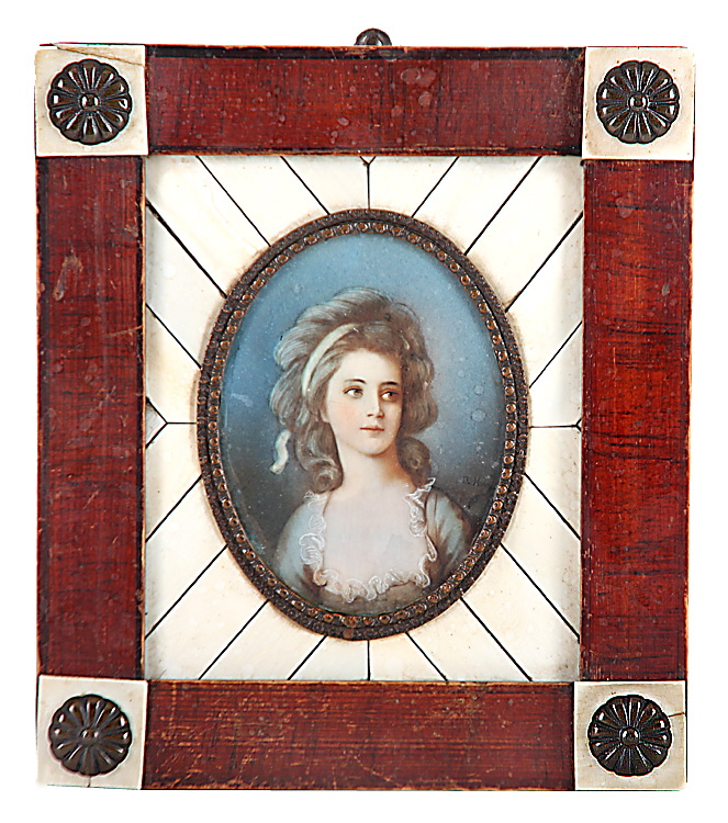 Ca. Ende 19. Jh.. „Mädchenbildnis“. Am rechten Bildrand etwas unles. bez.. Gouache/Bein, 8,5 x 6,4 cm. Mehrere kleine Farbabplatzungen. Unter Glas im alten Holzrähmchen.