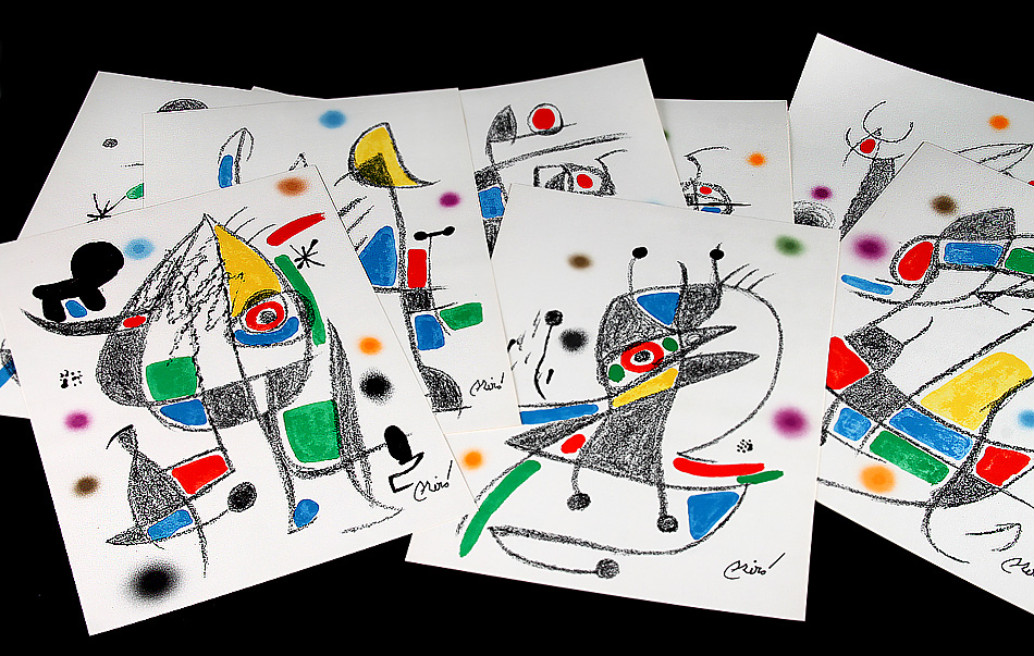 „Maravillas con Variacones Acrosticas en el jardin de Miró“. 13 Orig.Farblithografien, jeweils im Stein sign. Miró. Bll. 50 x 35,8 cm.