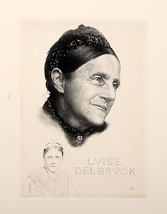 „Luise Delbrueck“. Radierung, re. u. bez. Olde, in der Platte monogrammiert HO. 27 x 19,4 cm. Bl.Ränder etwas angestaubt, vereinzelte kleine, braune Flecken, oberer Bl.Rand stellenweise lei. knitterig.