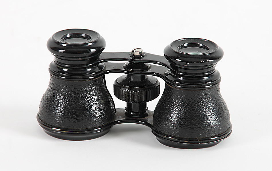 Schwarz lackiert, schwarzes Leder. Gebrauchsspuren, unten stellenweise eingedellt.