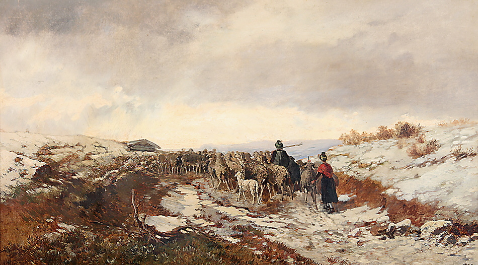 *1860. „The First Snow“ (Der erste Schnee). Re. u. sign. Osler. Öl/Lwd., 35 x 61,5 cm. Stuckr..