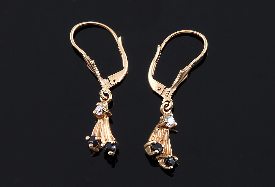 GG 333. Blaue Saphire, Zirkona. L ca. 3,1 cm. Zus. 2 g brutto.