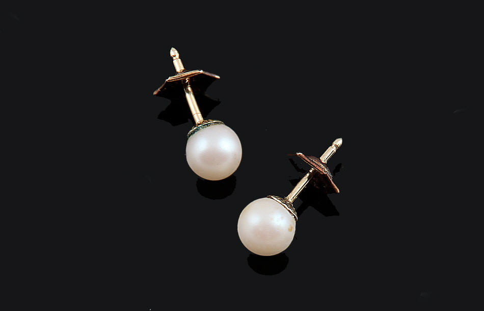 GG 333. Zuchtperle, D 5,5 mm. L ca. 1,5 cm. Zus. 0,8 g brutto.