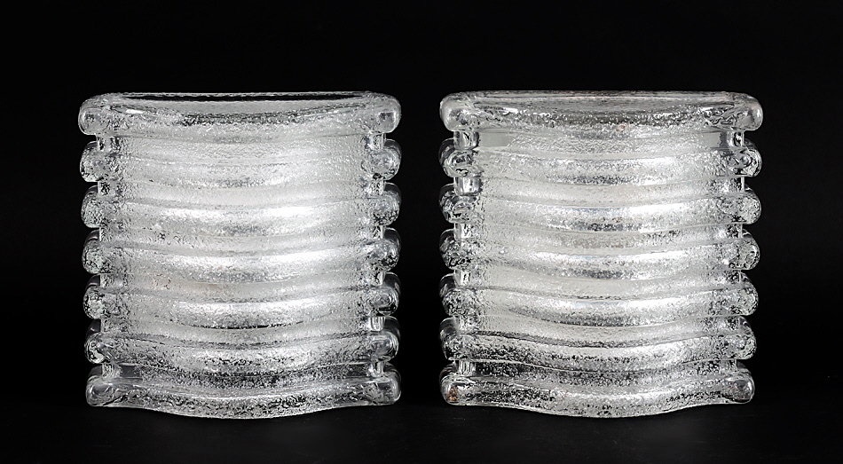 Hersteller: Glashütte Limburg, Nr. 206. Aluminium weiß und schwarz pulverbeschichtet, farbl. Glas mit Reliefstruktur. H ca. 22,3 cm. Gebrauchsspuren, Innenrand der Lampenschirme besch..