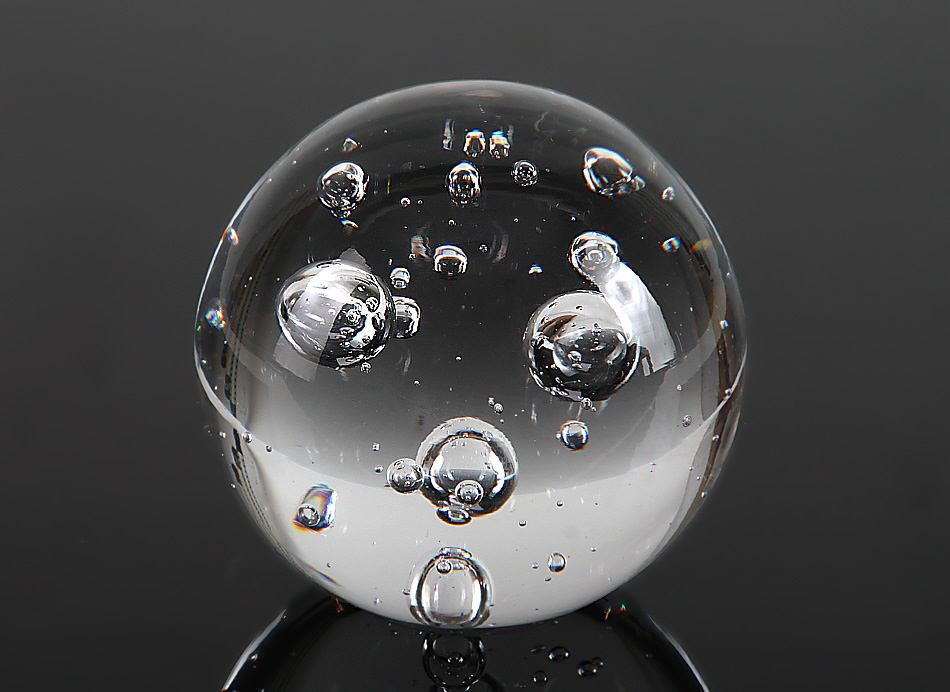 Farbl. Glas, eingestochene Luftblasen. H 6,5 cm.