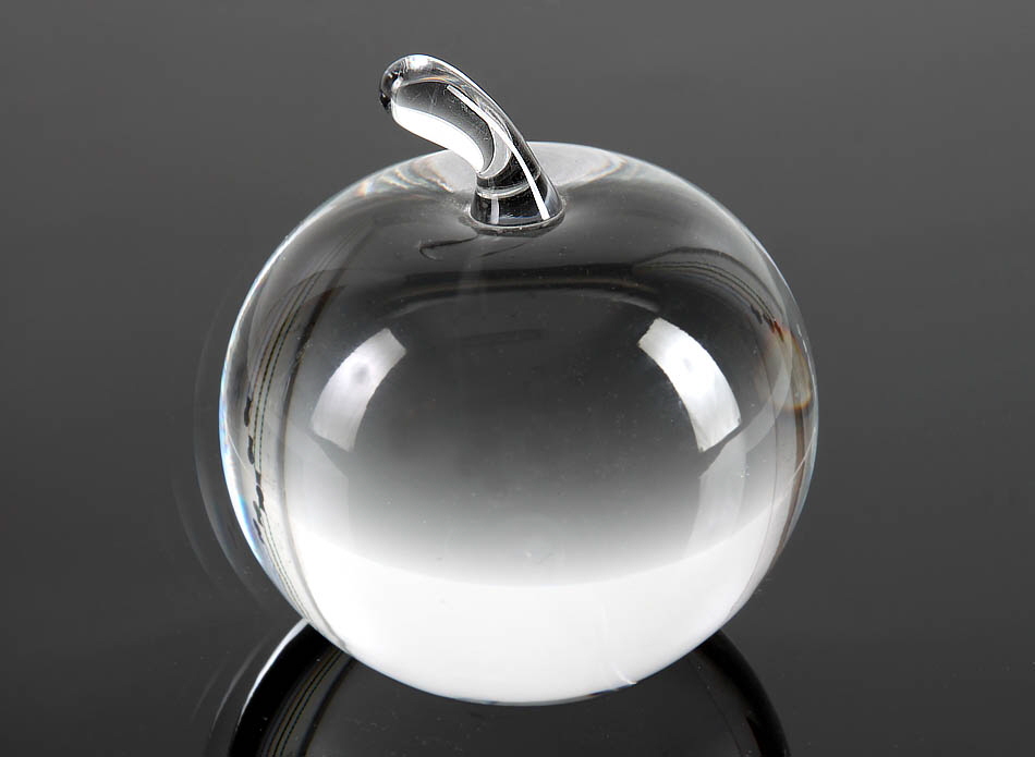 Form eines Apfels aus farbl. Glas. H 8 cm.