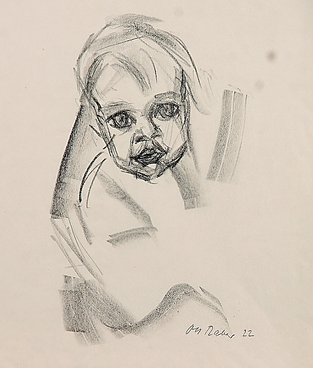 „Kinderstudie“. Re. u. sign. Osc Raber, dat. (19)22. Kohle und Bleistift/dünnem Pergamentpapier, 24,3 x 14,5 cm. Mit den oberen Ecken auf Passepartout montiert.