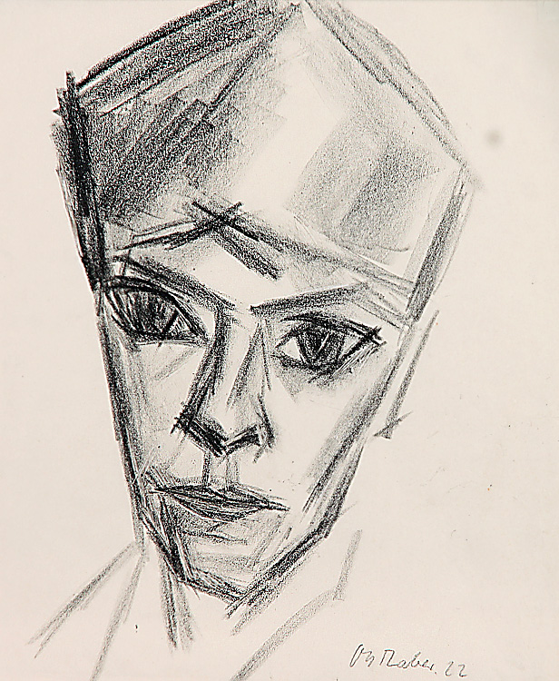 „Knabenportrait“. Re. u. sign. Osc Raber, dat. (19)22. Kohlezeichnung/dünnem Pergamentpapier, 30 x 17,5 cm. Mit den oberen Ecken auf Passepartout montiert.