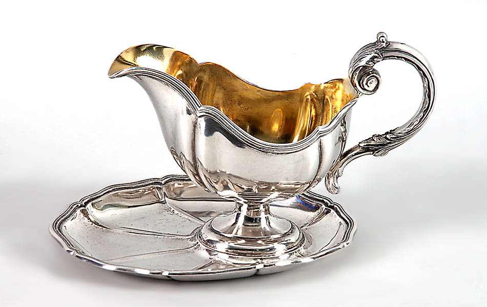 800er Silber, Herstellermarke: Wilkens & Söhne, Hemerlingen bei Bremen. Bauchiger Gefäßkörper mit geschwungener, profilierter Lippe, eingezogener, runder Profilfuß auf tablettartigem Untersatz, geschwungener Henkel mit Reliefs aus Akanthusblättern. H 14,5 cm. 522 g.