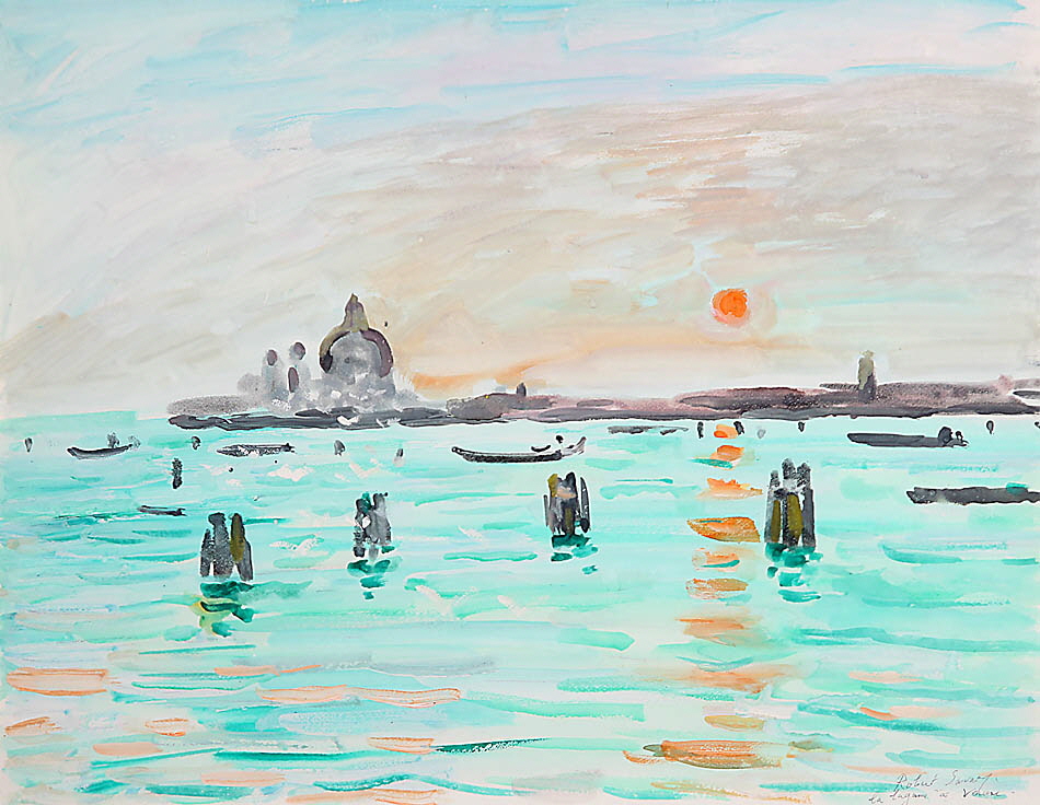 1920 Paris – 2000 Petit-Quevilly; franz. Maler und Grafiker. Studium an der École nationale supérieure des beaux-arts in Paris bei Maurice Brianchon. „La lagune à Venice“. Re. u. sign. Robert Savary, betit.. Gouache/Papier, 79,5 x 67 cm. Passepartout, sehr dekorativ unter Glas gerahmt.