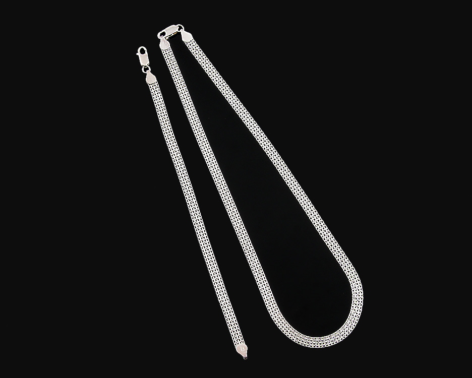Collier und Armband. 925er Silber. Feine Flechtoptik. Karabinerhakenschließen. Collier: L ca. 45 cm, Armband: L ca. 19 cm. Zus. 16,2 g.