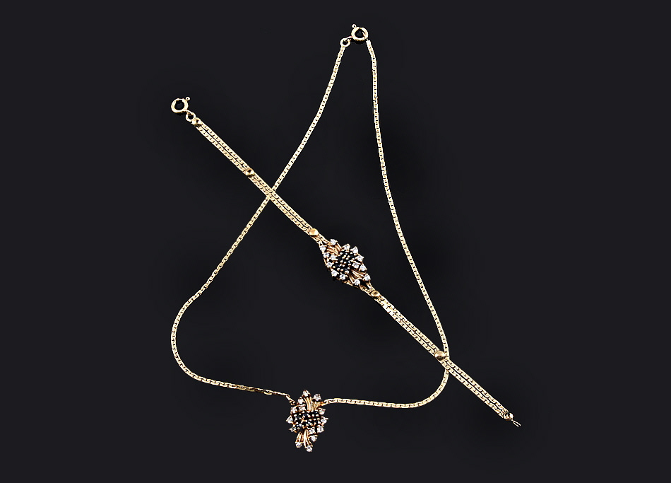 Collier und Armband. GG 333. Zirkonia, blaue Saphire. Armband: L ca. 19 cm, Collier: L ca. 42,5 cm. Zus. 15 g brutto.