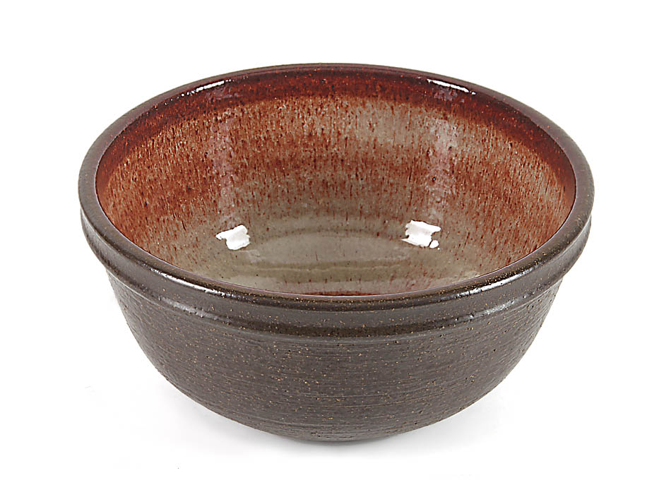 Westerwald, Höhr-Grenzhausen, Rudi Stahl. Am Boden sign. Rudi Stahl. Runder, bauchiger Gefäßkörper mit gekehlter Lippe. Glasur grau, braun. H 14,3 cm, D 29,6 cm.