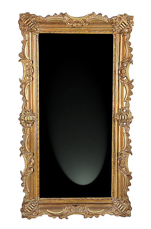 Stuckrahmen 19. Jh.. Alte Vergoldung später mit Goldbronze übermalt. Spiegelglas erneuert. H 139,5 cm, B 76 cm. Zustand B.