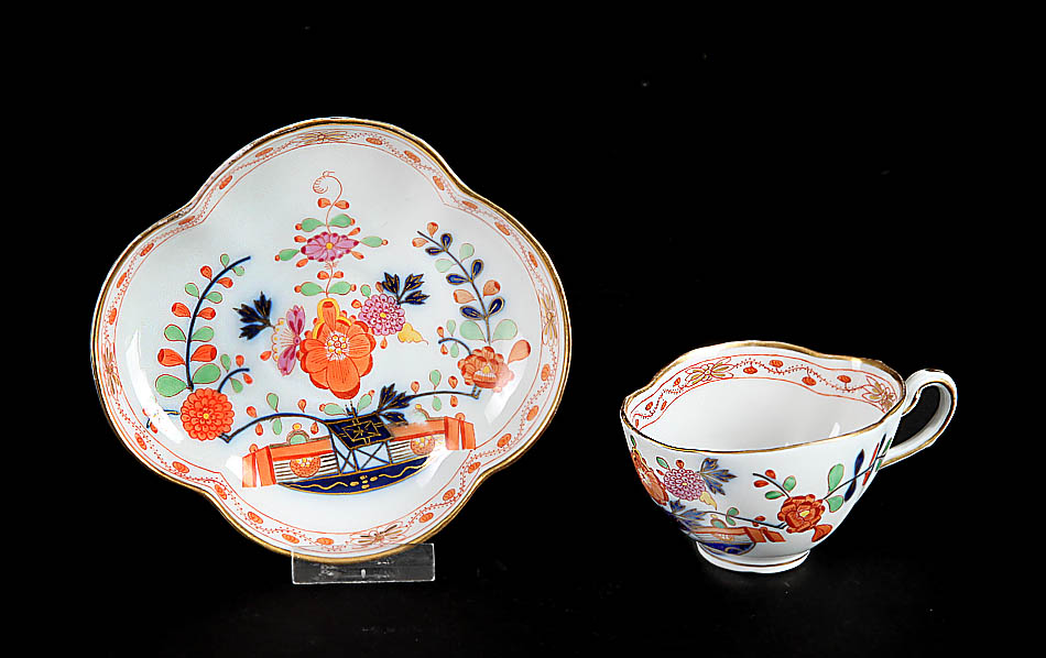 Meissen Teichert, Manufakturstempel. Feine Buntbemalung im chinesischen Stil. Tasse: H 5,4 cm, Untertasse: D 13,7 cm.