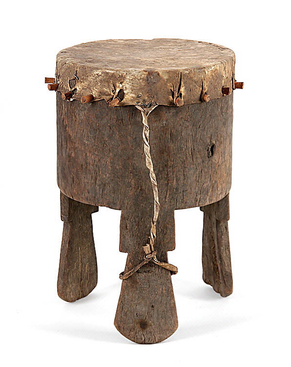 Afrika. Holz, Blech, Tierhaut. H 40,4 cm, D ca. 29,5 cm.