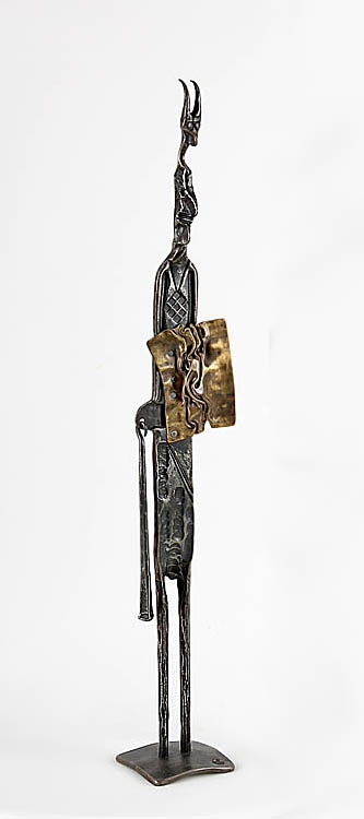 *1954; tschech. Bildhauer, Maler und Grafiker. „Borovnik“ (Der Kämpfer). Schmiedeeisen, grau patiniert, Bronze. Auf der Plinthe Reliefsign. JV. H 67,5 cm.
