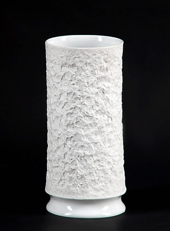 Waldenburg, Krister Porzellan Manufaktur, Manufakturstempel. Zylindrischer Gefäßkörper mit eingezogenem Fuß. Weiße, glänzende und Mattglasur, Reliefmuster. H 19 cm.