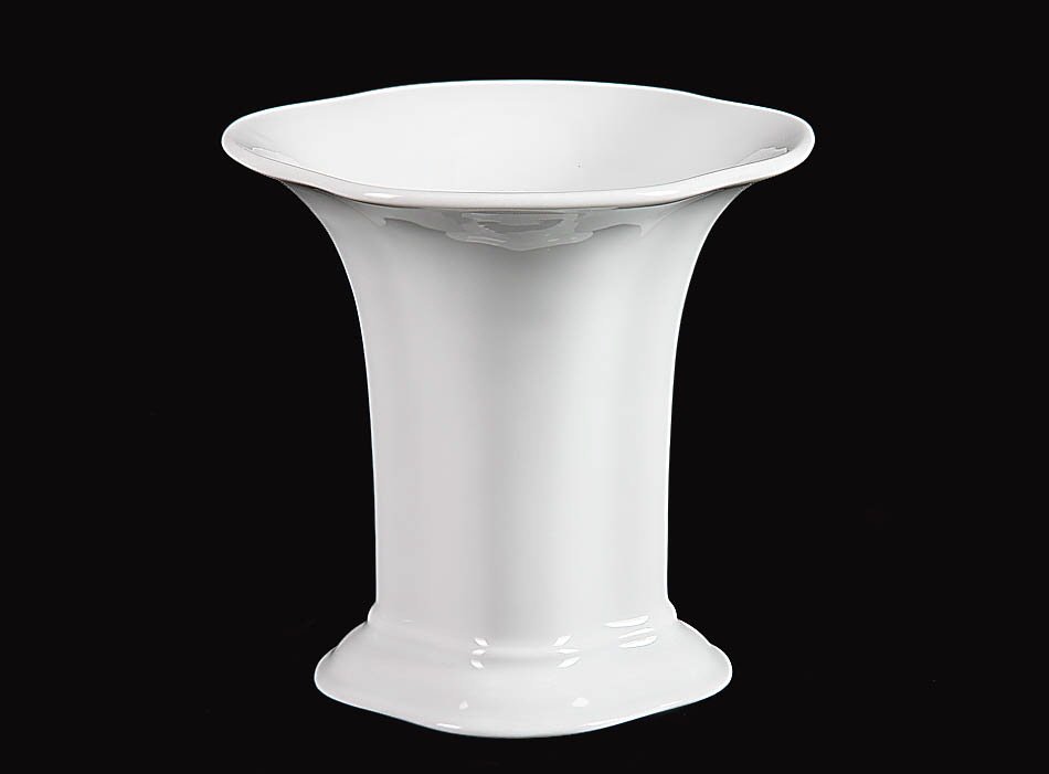Potschappel, Manufakturstempel. Geschwungener Gefäßkörper oben und unten weitend. Weißporzellan. H 13,8 cm.