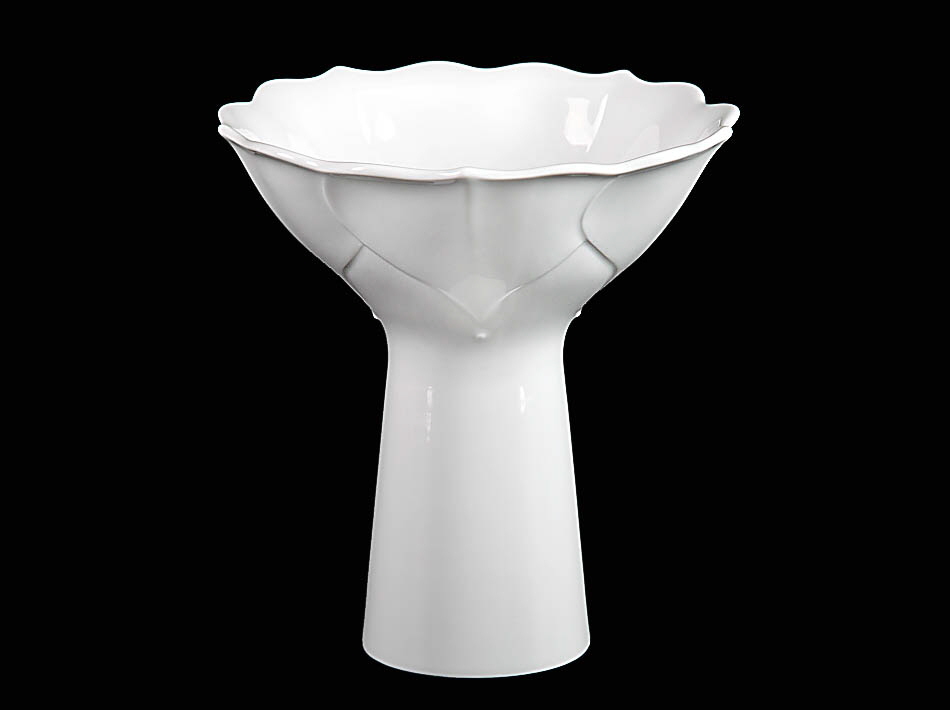 Meissen, blaue Schwertermarke, nach 1945. Konischer Gefäßkörper oben in einen Blütenkelch weitend. Weißporzellan. H 18,5 cm. Unten am Rand kleiner Chip.
