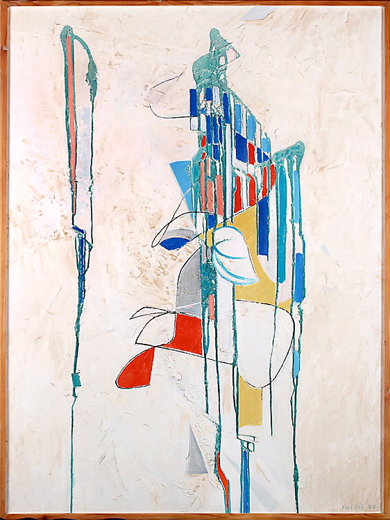 1919 Mistrín -2003 Svatoborice; tschech. Maler und Grafiker der abstrakten Kunst. „Pupence vune“ (Duft der Knospe). Re. u. sign. Vasicêk, dat. (19)99. Verso Papieretikett mit handschriftlichem Bildtitel und Künstlerbez.. Öl/Lwd., 130 x 97 cm. R..