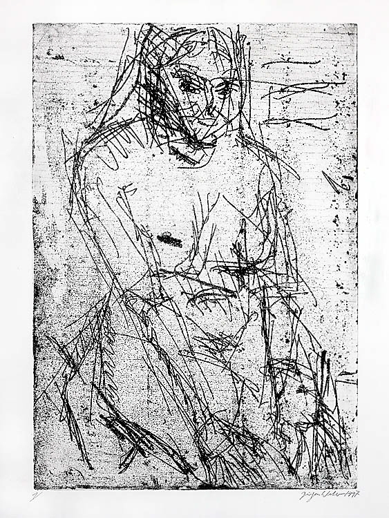 *1936 Ohlau, Provinz Niederschlesien, lebt und arbeitet in Rostock; deut. Maler, Grafiker und Bildhauer. Studium an der Hochschule für Bildende Künste in Dresden. Schüler von Max Schwimmer, Rudolf Bergander und Günter Horlbeck. „Sitzende Frau“. Radierung, 1. Druck, re. u. handsign. Jürgen Weber, dat. 1997. 51,6 x 36 cm. Vergl. R..
