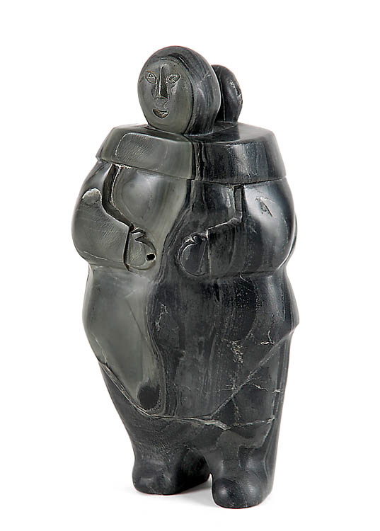 Kanada, Quebc. „Mutter mit Kind“. Speckstein poliert. Auf der Basis sign.(?), Nr. 124254. H 28 cm.